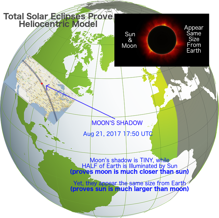 - If the Flat Earth model is correct, and the Moon moves directly in front of the Sun, most if not all the Earth will darken (the Moon blocks most if not all the Sun).