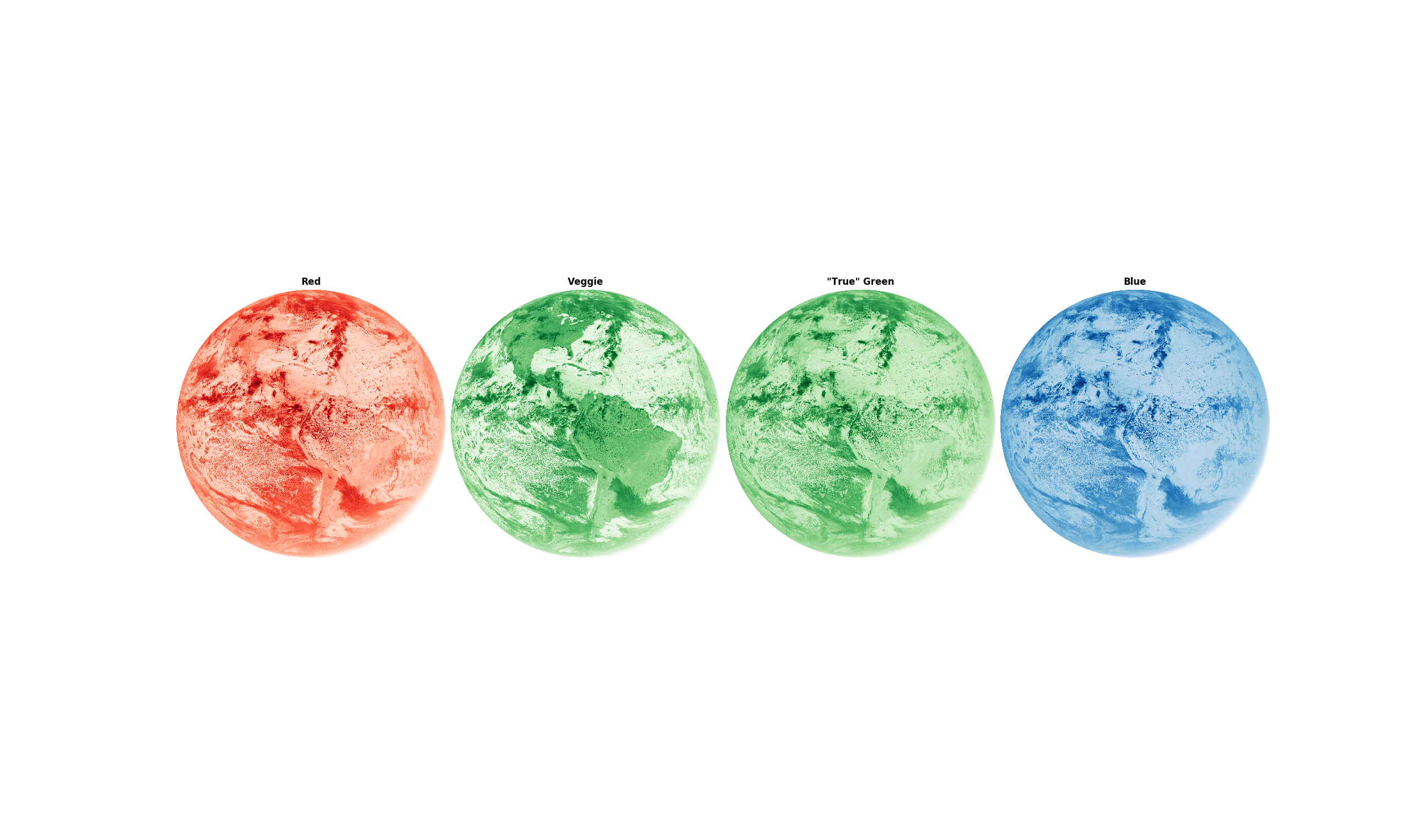 Below is a snapshot of the individual sensors, projected onto a globe model (including the conversion of the 0.86µm sensor to visible green):